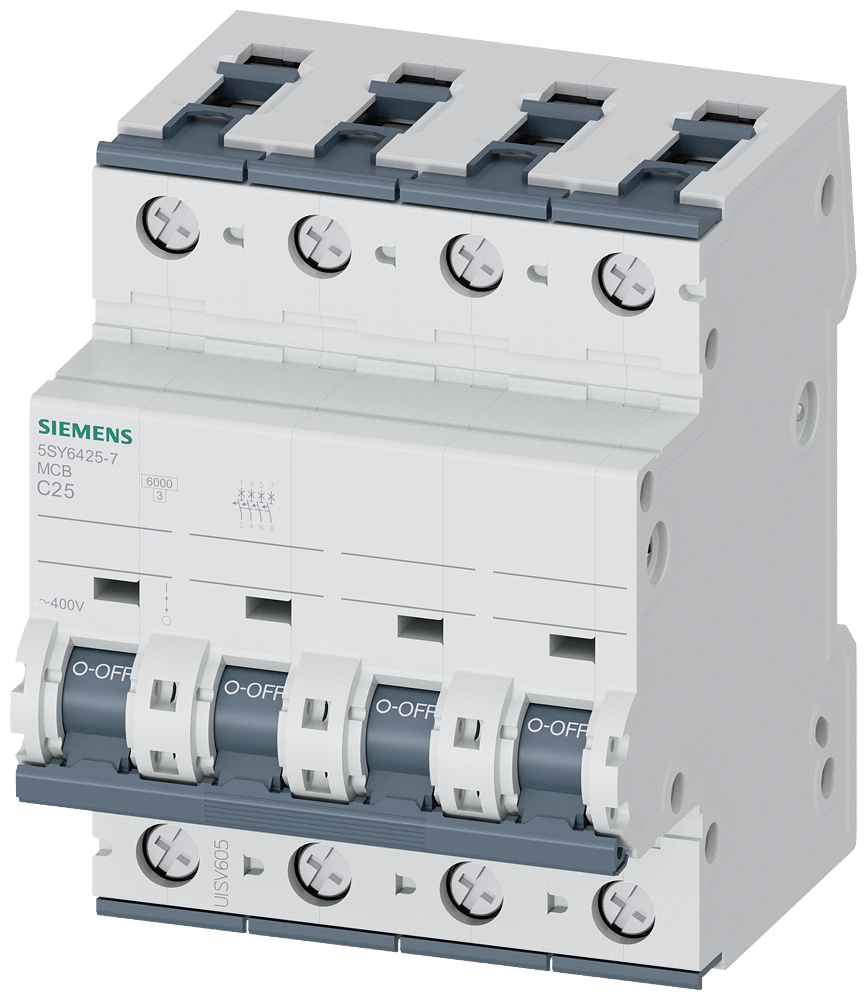 SIEMENS 5SY64257/ 5SY6425-7 Leitungsschutzschalter 400V 6kA, 4-polig, C, 25A, T=70mm