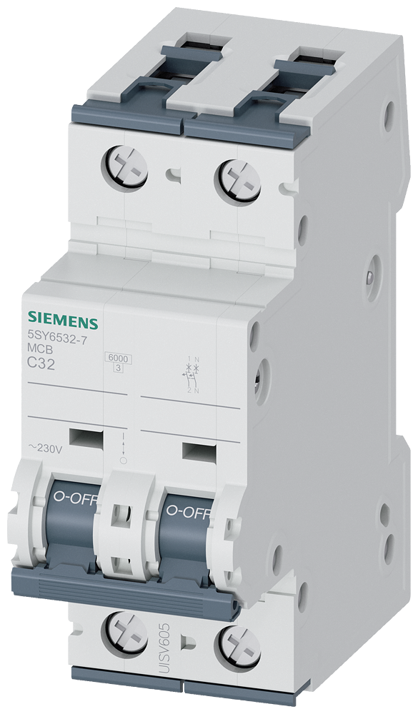 Leitungsschutzschalter 1P+N, 32A, Typ C, 6kA – Siemens SENTRON 5SY6532-7Zweipoliger Leitungsschutzschalter mit 32 A Bemessungsstrom, ideal für größere Verbraucher. C-Charakteristik für moderate induktive Lasten. 6 kA Kurzschlussfestigkeit gemäß EN 60898. Kompakte Bauform mit 2 TE Breite, geeignet für DIN-Schienenmontage. Hohe Zuverlässigkeit und Kombinierbarkeit mit Siemens-Zubehör.
